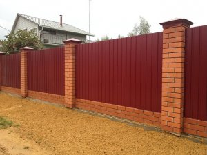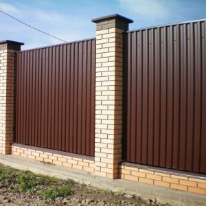 Заборы из профнастила с кирпичными столбами